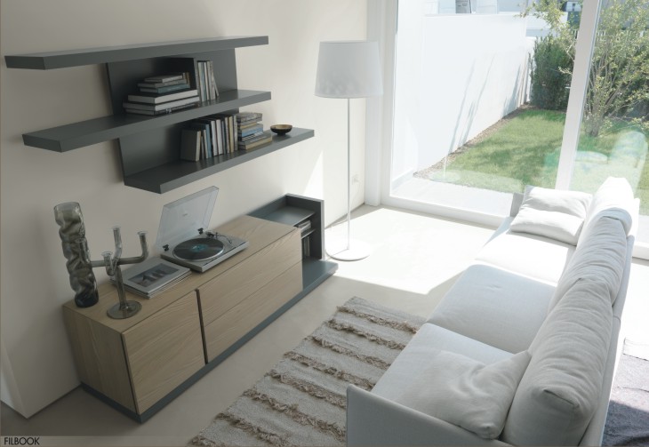I mobili Filbook accostando diversi piani d’appoggio sfalzati ed utilizzando spessori diversi si presta a giochi personalizzati, sia come disposizione e funzionalità che per cromatismi e finiture.