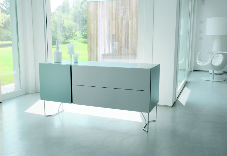Si può accostare coordinata a questi gruppi notte la scrivania moderna Fildesk, sempre progettata da Caccaro, in versione fissa o girevole.