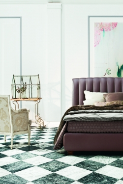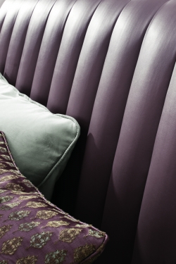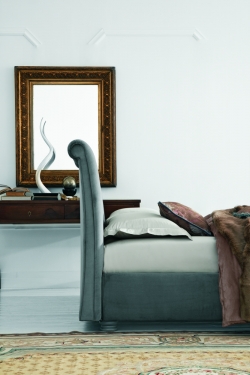Design Studio Balutto Assocciati. Elegante curvatura dello schienale, proposto nelle tre versioni capitonné, liscia e barré. Letto dalla forte personalità, un design che ne esalta le forme e la funzionalità.