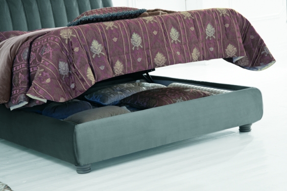 Giroletto che si prolunga fino a creare un ampia testiera imbottita dalle particolari finiture a scelta, disponibile la versione con contenitore a ribalta.